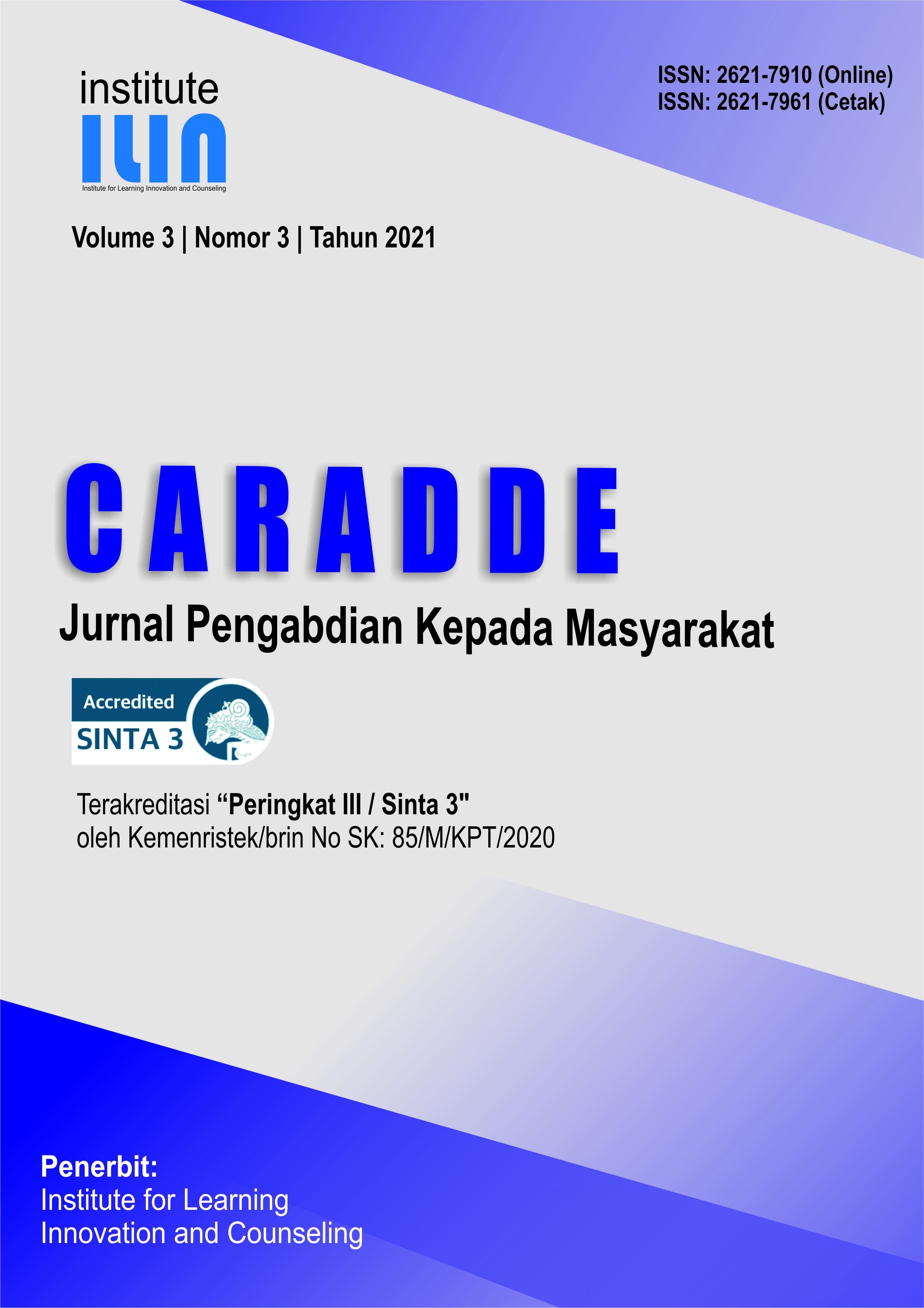 CARADDE: Jurnal Pengabdian Kepada Masyarakat with e-ISSN: 2621-7910 and p-ISSN: 2621-7961.. is a journal managed by the Ilin Institute. Publish articles on community service activities in the fields of education, social, human resource development, health, appropriate technology, and health.